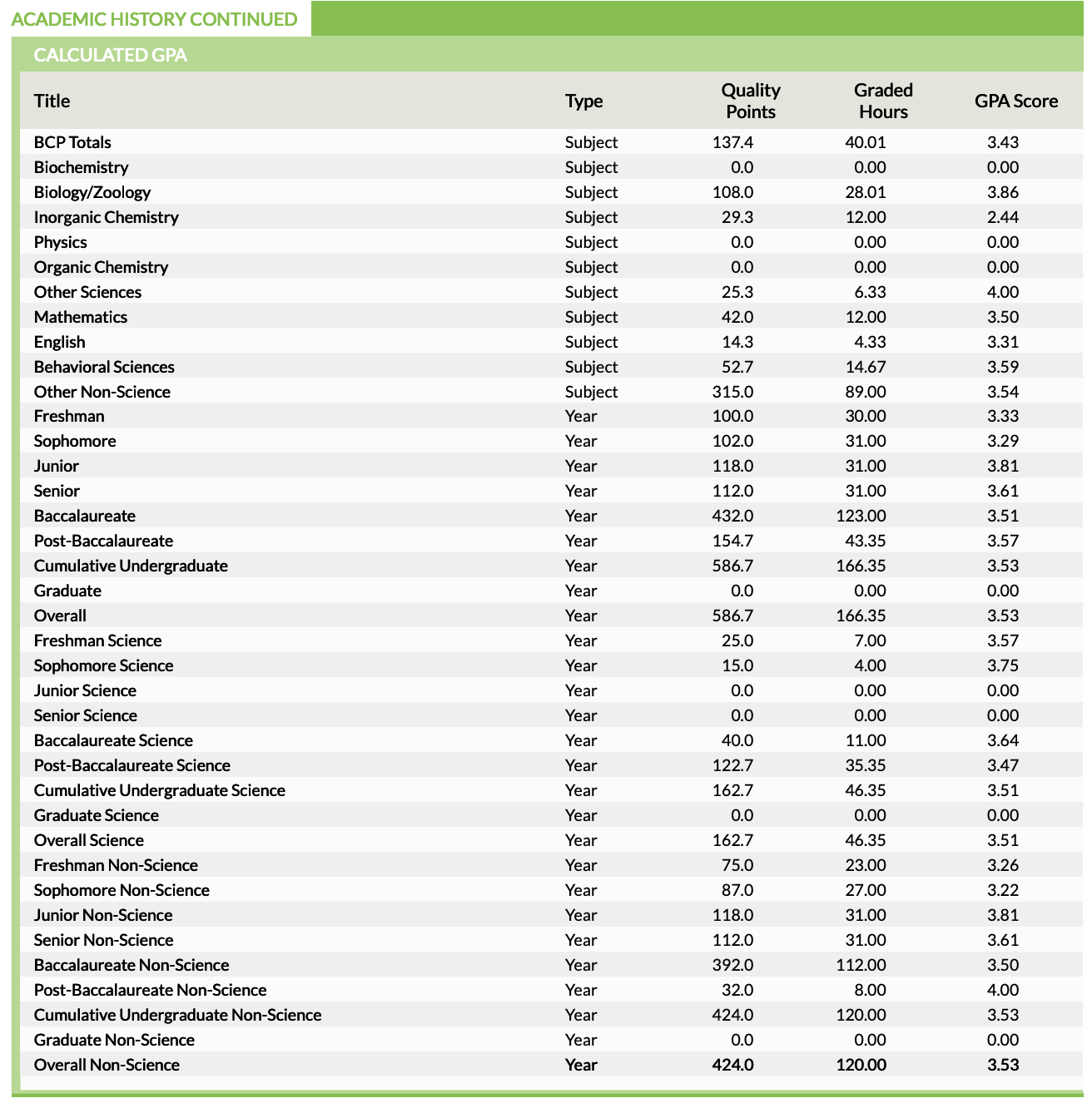 CASPA GPA Breakdown