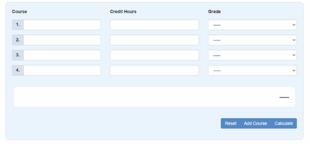 Input grades, credit hours, and course types to get accurate calculations—no spreadsheet formulas required.