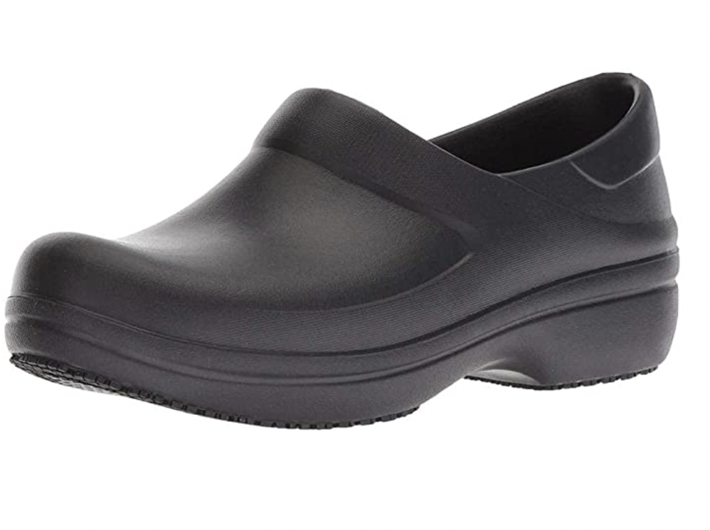 shoes, my current go-tos are Crocs clogs. Super comfy and easy to clean/disinfect and my feet don’t hurt after standing and walking for 8-10 hours a day. I find all of these