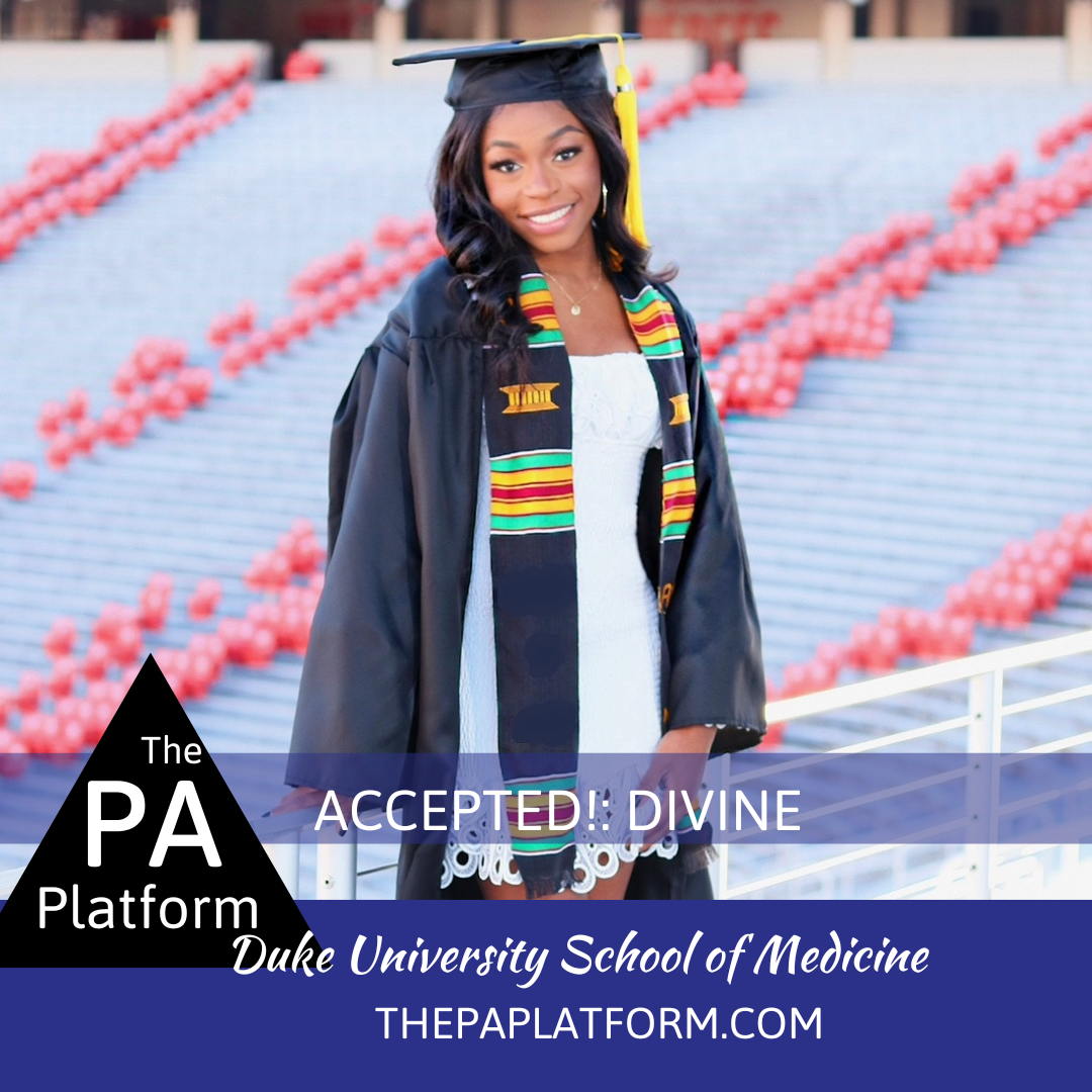 Any advice for other pre-PA students? 1. BREATHE. Everything is going to be okay and will fall into place. 2. Apply as early as you can, and make sure to inform anyone writing your LOR your deadlines months in advance 3. If you feel like you’re not the best at interviewing, brush up on this skill. Practice with as many people as you can and do mock interviews. This helped me so much. 4. BREATHE (again), you’ve got this!