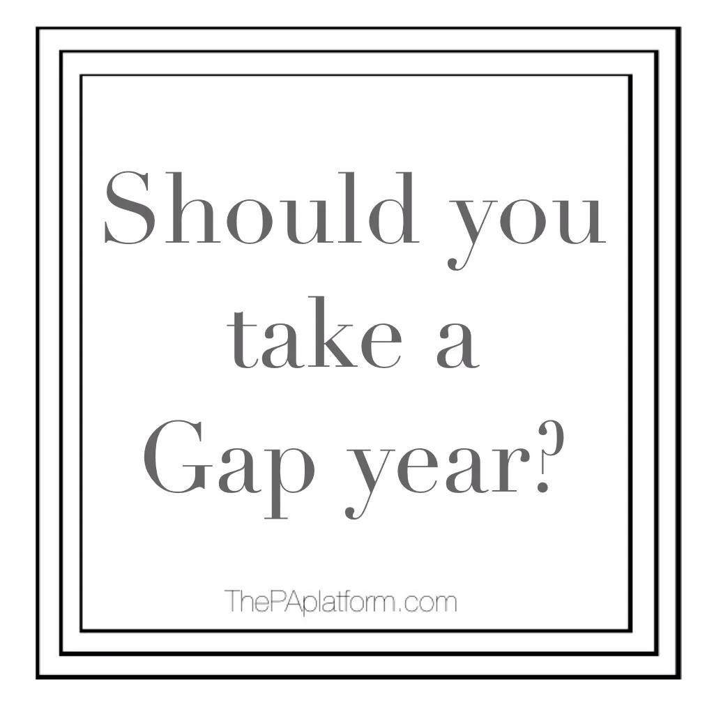 I was at a dinner tonight with PAs in my area and the question came up about whether it was a good idea to take a “gap year” to get experience and hours before applying to PA school, specifically between undergraduate graduation and starting a PA program. While taking a year off to work does make you a more competitive candidate, I personally think that if you have the minimum requirements, or are close to the minimum amount of hours, it is worth applying to the schools you really want to go to. Most people wanting to become PAs are very aware that many applicants end up having to apply more than once. I believe by applying initially, even if you don’t get in, if you were to have to reapply it makes you a stronger candidate. This gives you a chance to show that you have taken the time to improve your qualifications and that you are still interested in the program.
